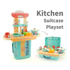 Kitchen Suitcase Playset, Blue, 31 Pcs